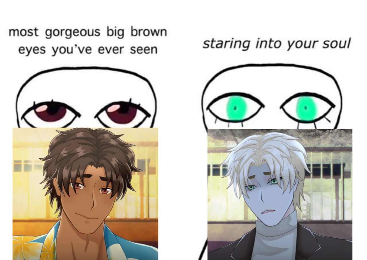 and now for the suspiciously white british man shaped elephant in the room. time to address the suspiciously white british man shaped elephant in the middle of the room. I would like to start off by saying that i have yet to play through his route, but will prolly have to do it at another time since every time he opens his mouth i may or may not cuss him out. he's INCREDIBLY well written, it was like dissasecting the textbook case of manipulation in real time. i need him to shut up, i need him to grow and become better. i want to throw him into the wood chipper. i've got no idea what his deal is in-universe but i can clearly see the big bold letters above his head reading PERSONIFICATION OF ANXIETY AND INTRUSIVE THOUGHTS AND METAPHOR FOR ABUSIVE RELATIONSHIPS. which leads me to the next point, looks around nervously.